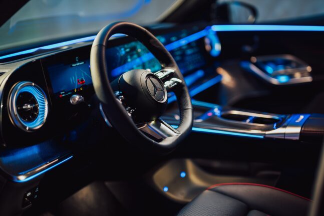 Za zlom v segmentu střední třídy považuje výrobce palubní desku, která může být v nejvyšší výbavě vybavena jednolitým displejem MBUX HYPERSCREEN s úhlopříčkou 99,3 centimetru (39,1 palce) spojující digitální přístrojový štít, centrální displej a displej pro spolujezdce. V nižších výbavách je stejná plocha složená ze tří samostatných displejů, v té nejnižší je ve stále jednolité ploše spolujezdcův displej nahrazen lesklým dekorem.