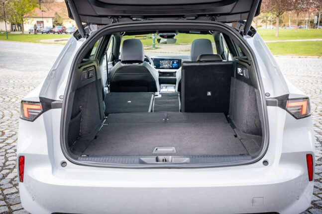 Opel Astra neztratil nic na praktičnosti. Krátce jsme projeli kombi Astra Sports Tourer, které bude pravděpodobně tou prodávanější karosářskou verzí, jakkoli v ceníku najdete na rozdíl od sesterského Peugeotu 308 i verzi hatchback. Kombík má základní objem kufru 597 l s pravidelnou základnou o velikosti 103×103 cm. Po sklopení opěradel zadních sedadel (dělených a sklopných v poměru 40:20:40) se přepravní objem zvětší až na 1634 l. U elektrické verze je to cca o 100 litrů méně.